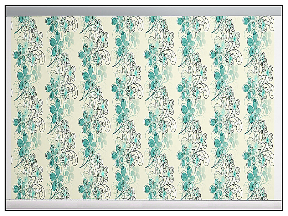 Fabric pattern_ stylised flowers with blurred colouring in light teal.