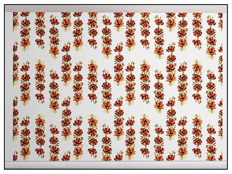Fabric pattern: red iceland poppies in a random repeat design.