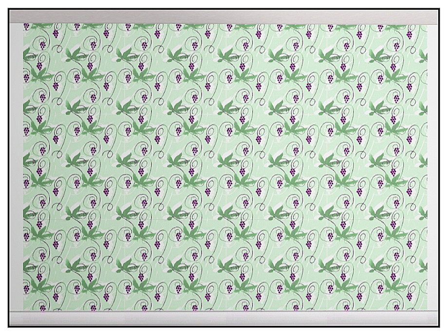 Fabric pattern: ripe purple grapes and green leaves suspended from curliques