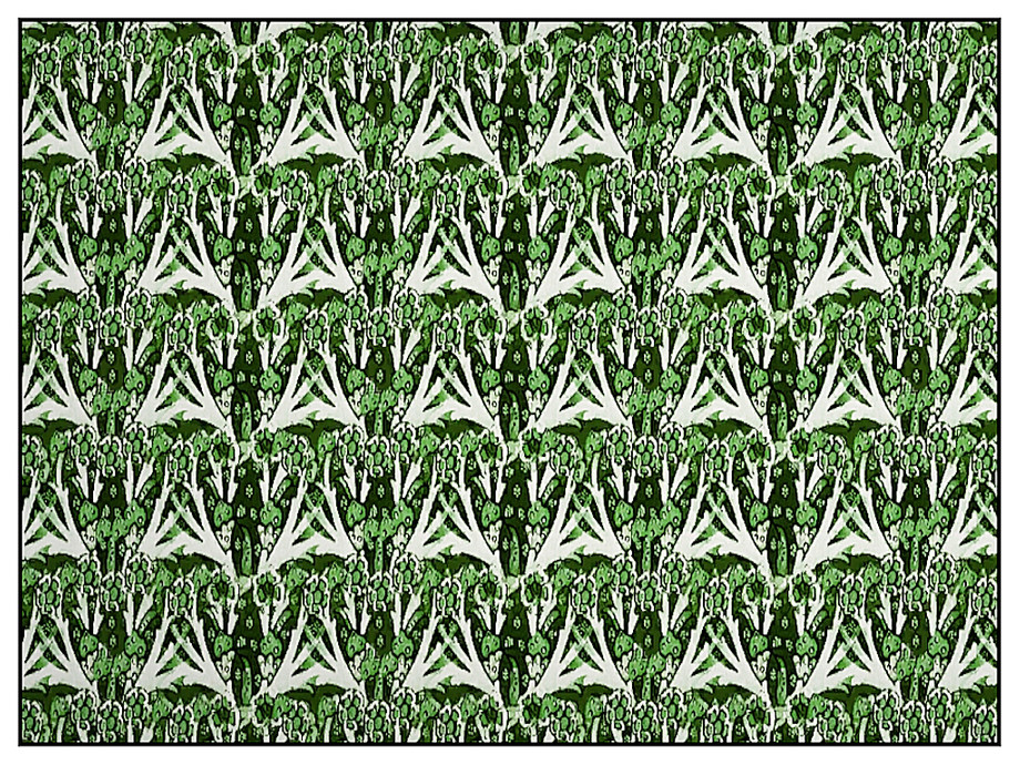 Fabric pattern : allover floral broccoli design in green and white on black.