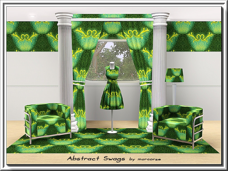 Fabric pattern: abstract swags in green and yellow