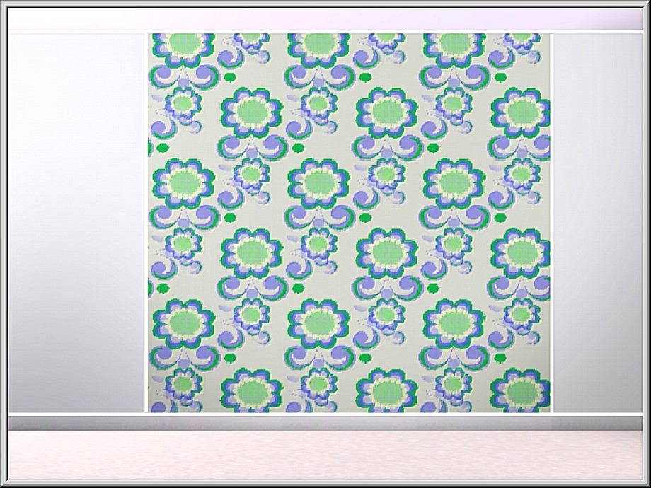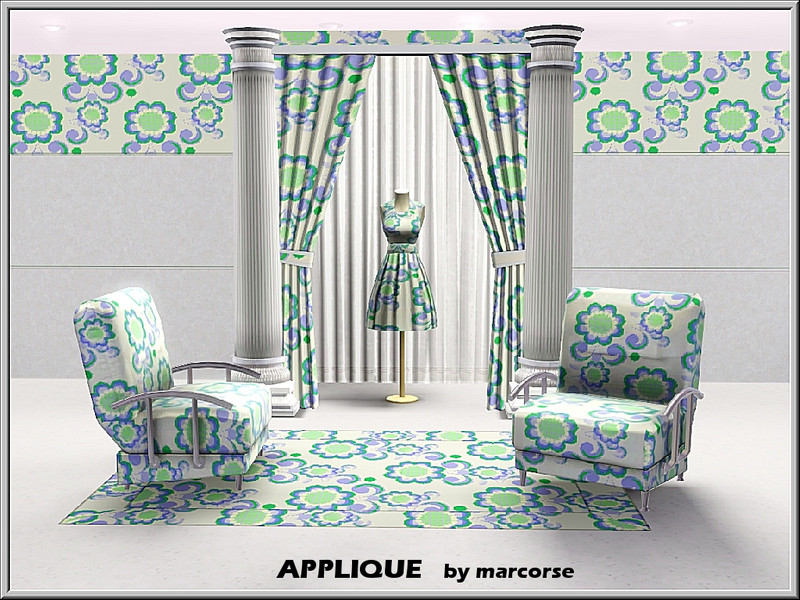 Fabric pattern: applique flowers in blue, green and white