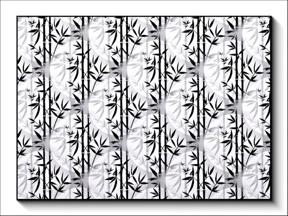 Fabric pattern: full moon behind a stand of bamboo, in blackl grey and white.