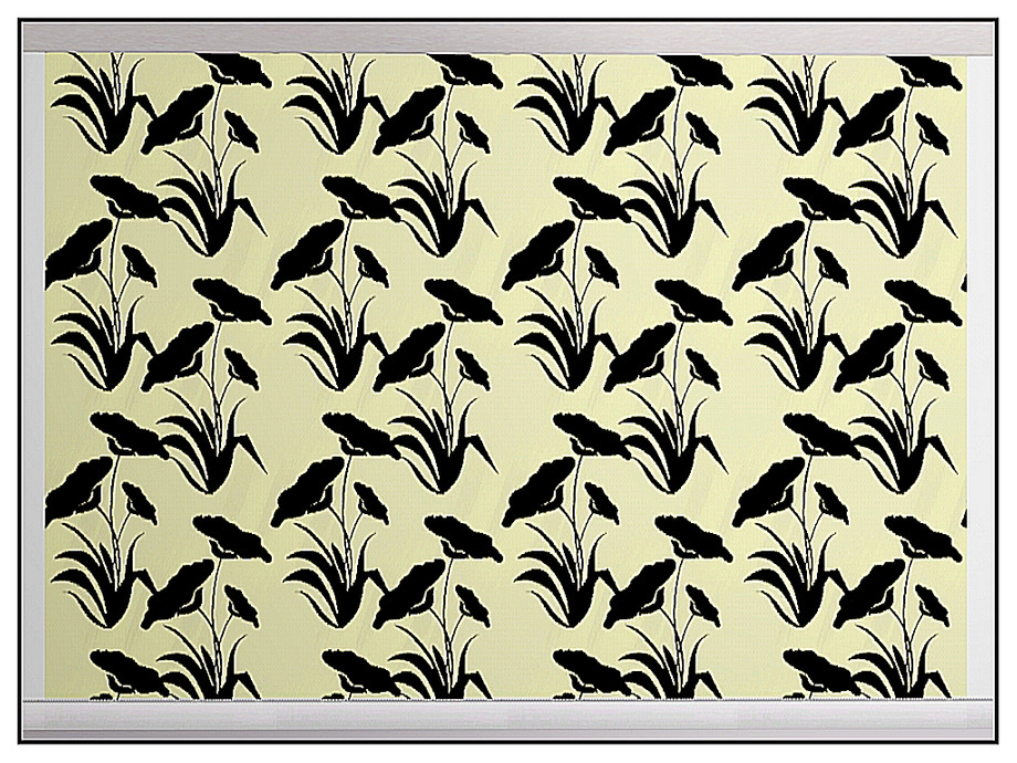 Fabric pattern: flower silhouettes on creamy yellow