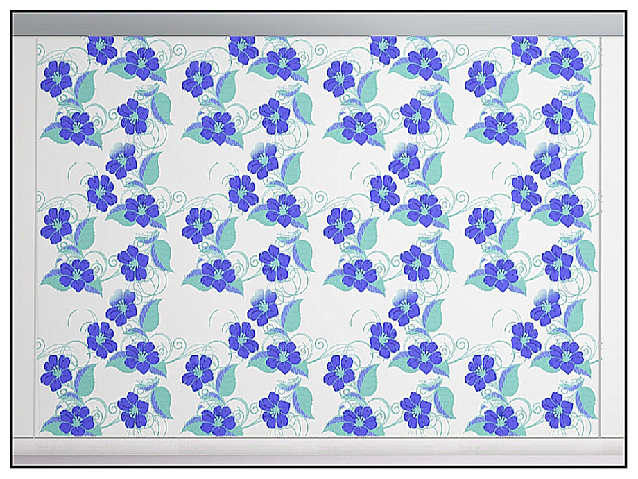 Fabric pattern: blue nasturtium flowers and generic leaves on white