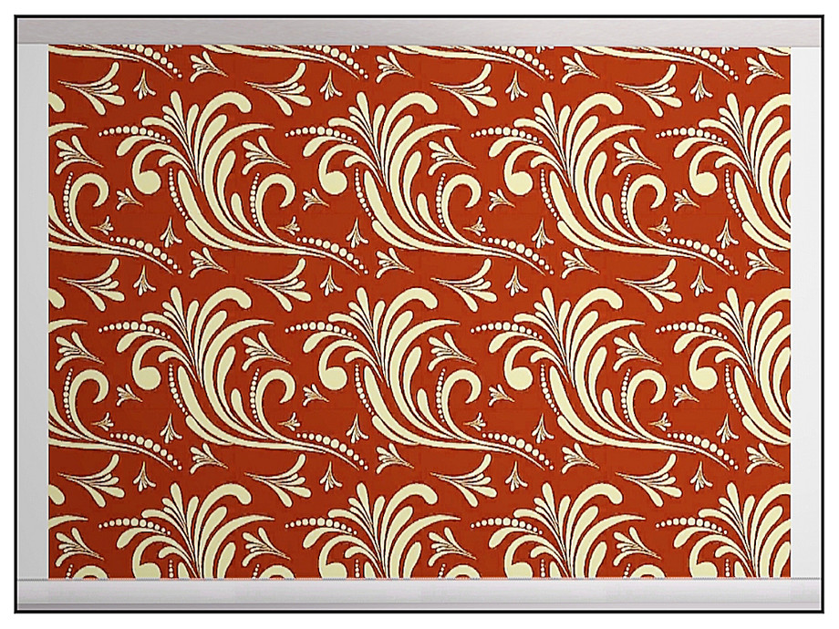Fabric pattern: style and flourish elements in soft yellow on burgandy