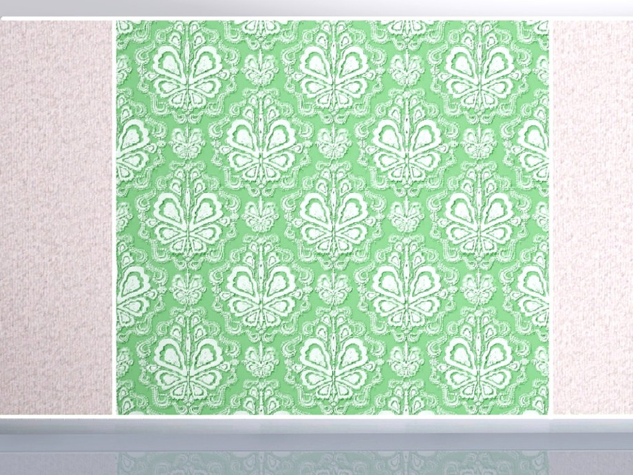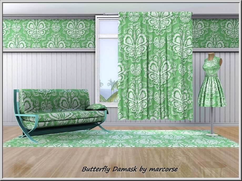 Fabric pattern: green/white damask in a butterfly design