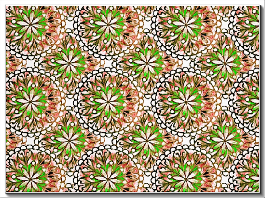 Fabric pattern: floral pattern with a circular motif in pink and green
