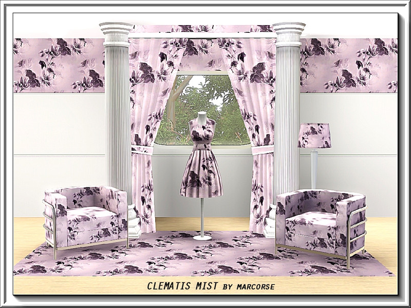 Sims 3 — Clematis Mist_marcorse by marcorse — Fabric pattern - clematis vine in a misty pale lilac.