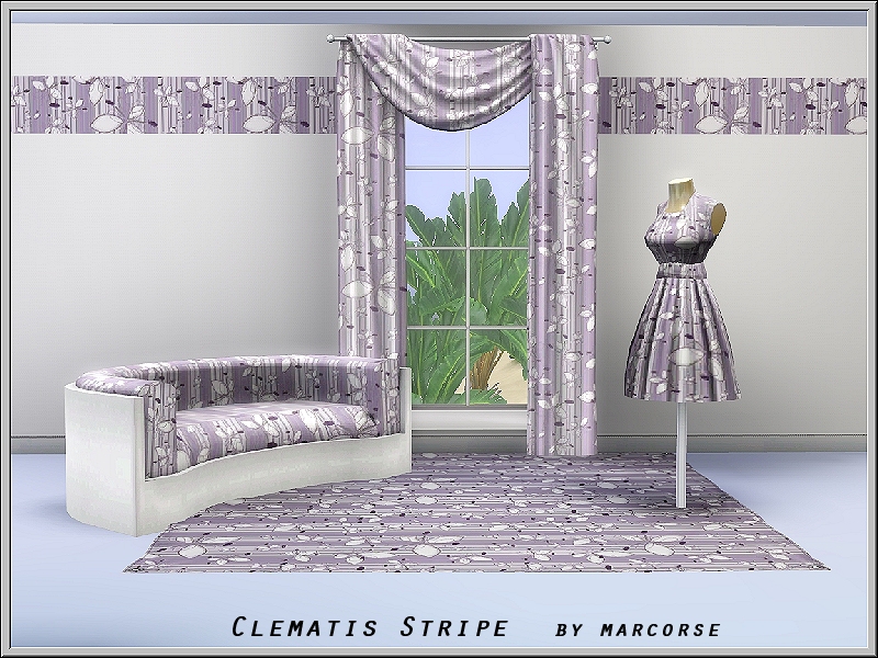 Fabric pattern: stylised clematis on striped background