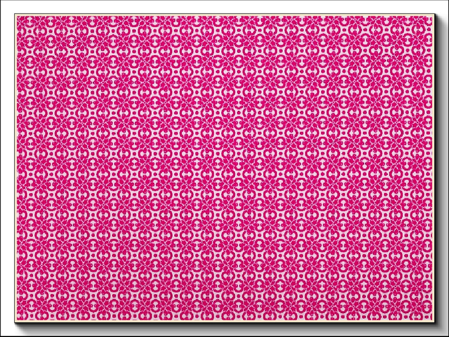 Fabric pattern: chain formation of 4-petal daisy shapes, in bright fuchsia pink on white.