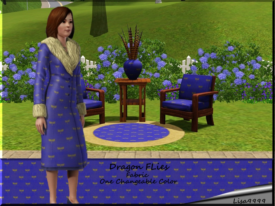 A textured material with rows of dragon flies.One changeable color. Lisa9999