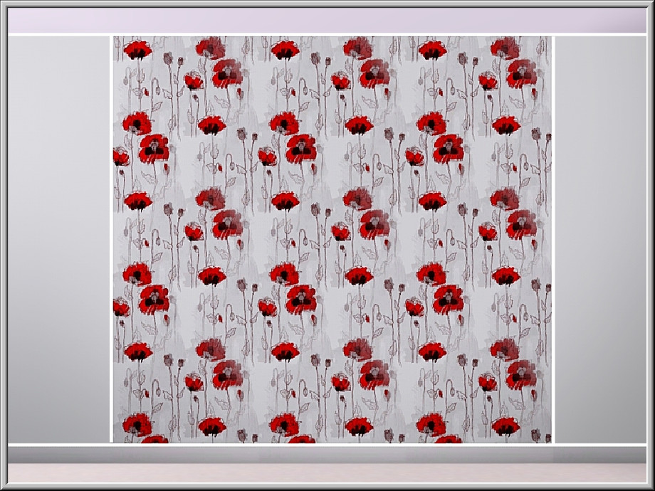 Fabric pattern: shaggy red Flanders poppy in a random repeat design.