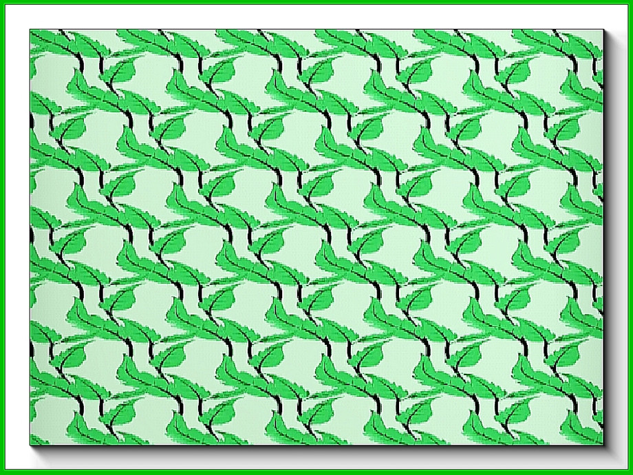 Fabric pattern: flat-leaf sprays in a diagonal design in green