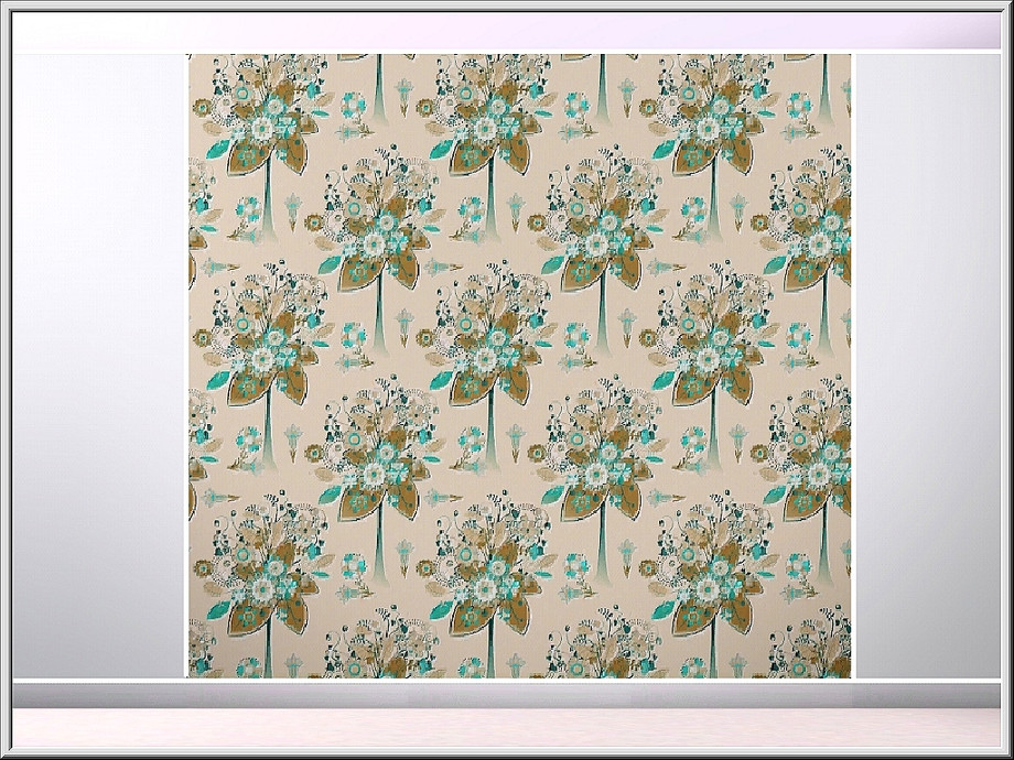 Fabric pattern: floral shapes and leaves in an aqua and brown tree design