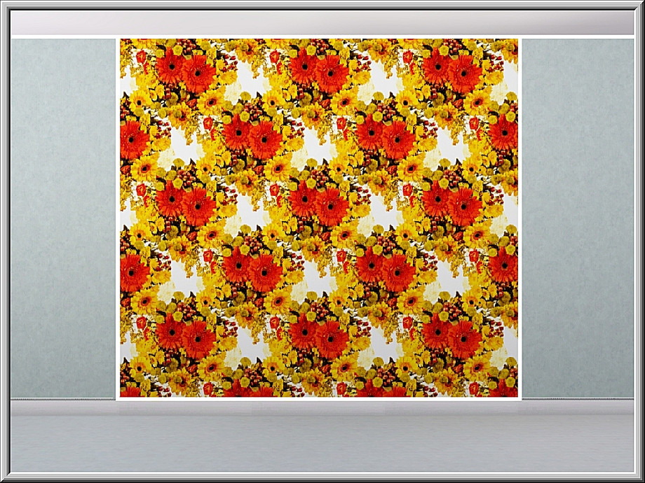 Fabric pattern: bright orange and yellow gerberas in a pretty bouquet
