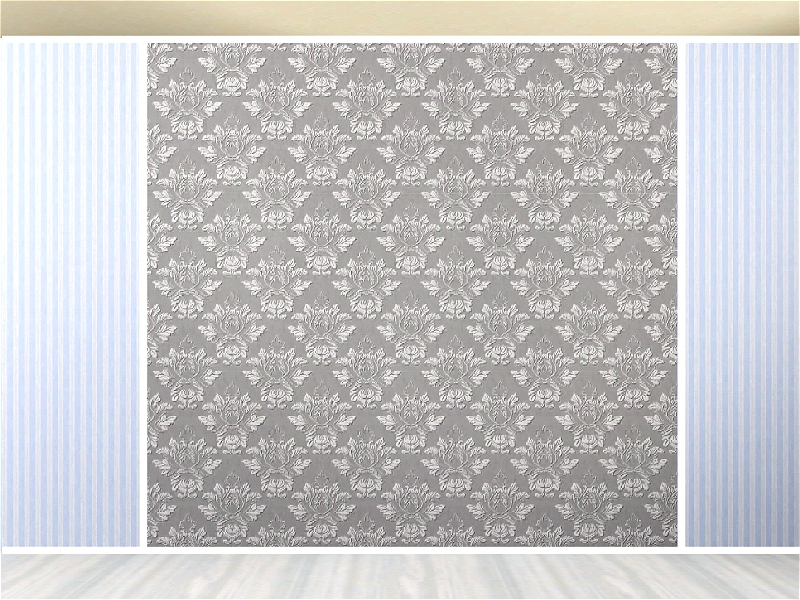 Fabric pattern: traditional damask design in silver and grey