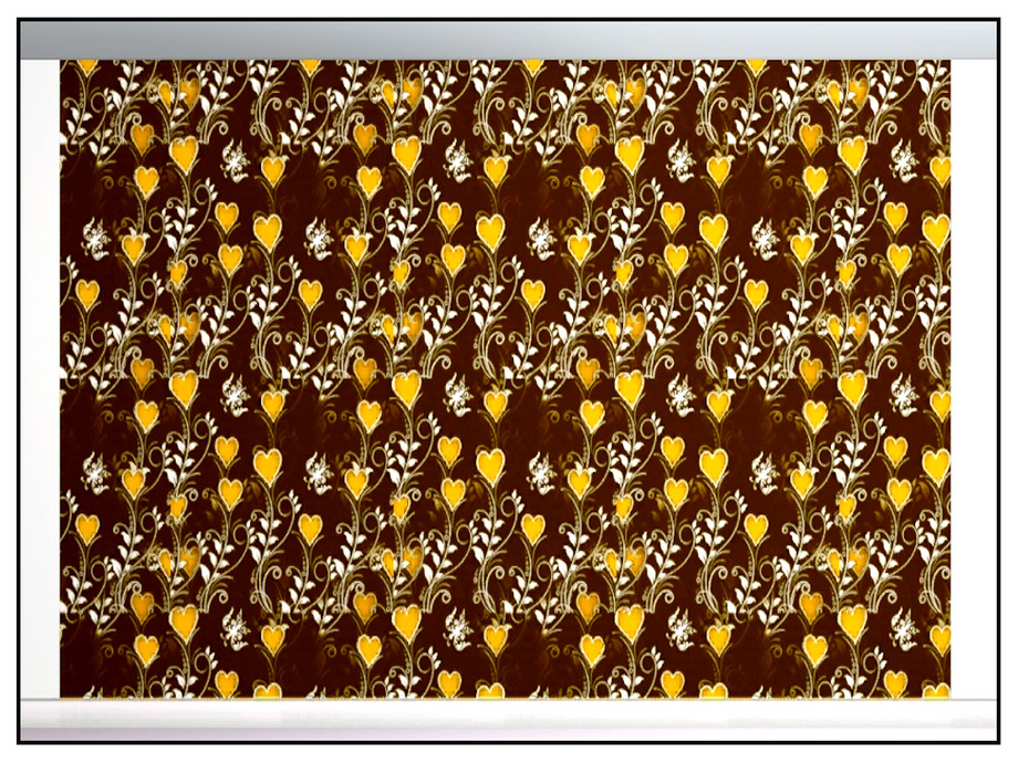 Fabric pattern - floating hearts and leaf elements in yellow and white on brown