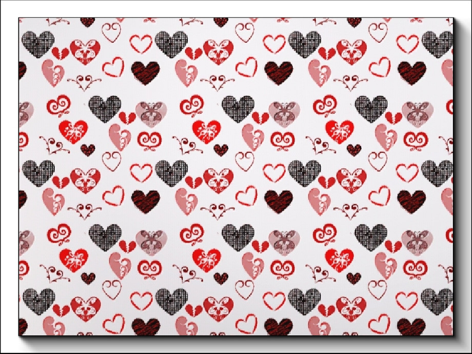 Fabric pattern: allover design of heart templates in red and black on white