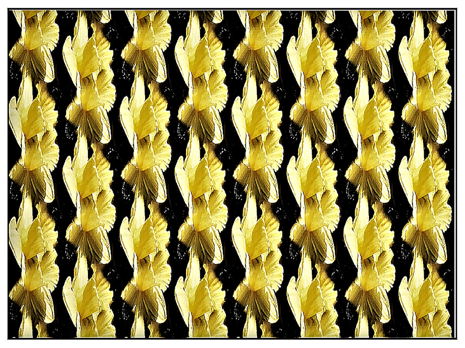 Fabric pattern: glorious King Alfred daffodils in a vertical design on black