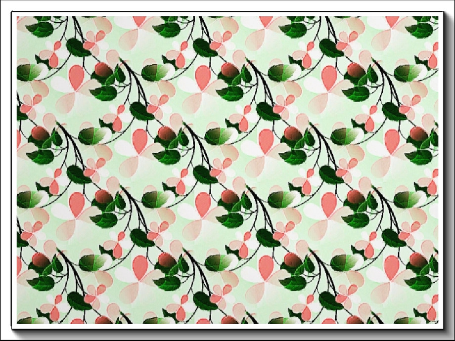 Fabric pattern: muddled leaf design in pink and green
