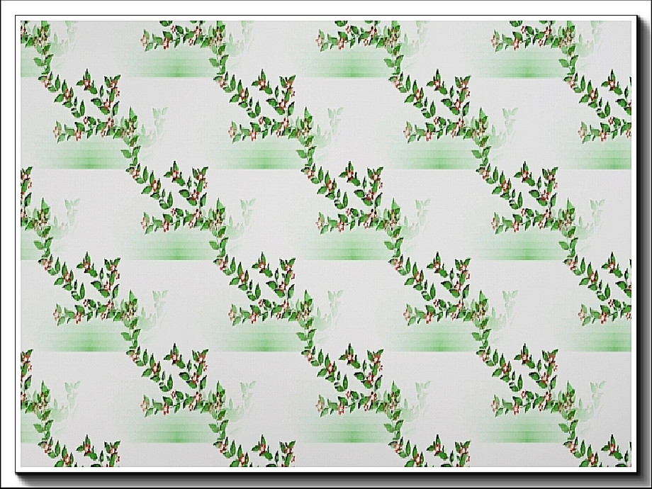 Fabric pattern: leafy branches with flowers in a ladder design on white
