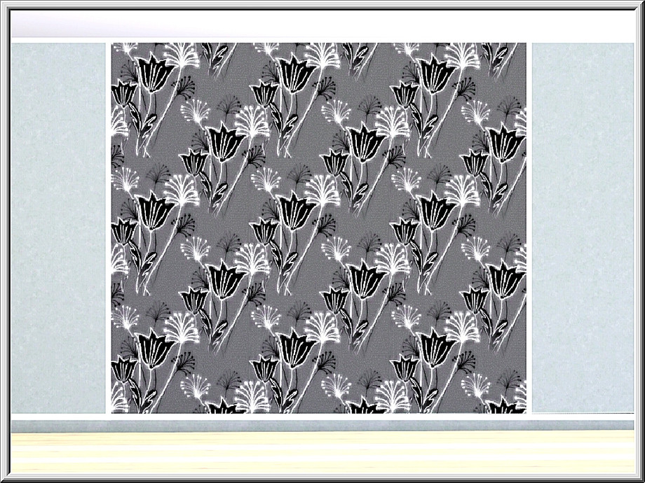 Fabric pattern: stylised field flowers in shades of black, grey and white
