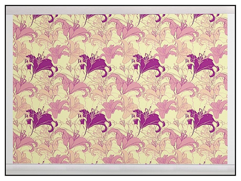Fabric pattern: large format design of lillium flowers in pink/purple shades