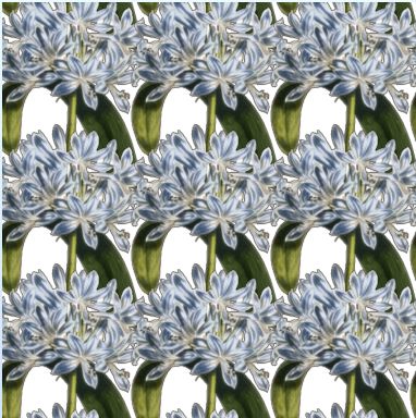 I couldn't resist this beautiful image of a blue Nile lily - so here it is in a big, bold pattern, just one flower a straplike leaf. [the pattern name originated from an 'in-joke' with my late grandma - I couldn't handle 'agapanthus' so, to me, she always referred to them as 'aggie's pants' . . her name was Agatha!!]