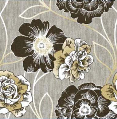 An older style wallpaper pattern in the cabbage rose style - this one almost monochromatic with only a touch of yellow.