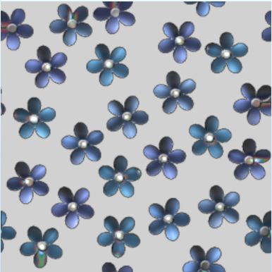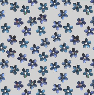 Variegated blue daisies on a plain field . . . simple repeat pattern that works.