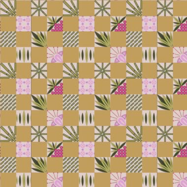 A small format patchwork design featuring bamboo motifs.