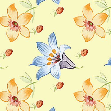 A sweet and delicate, pastel pattern featuring single agapanthus flowerets . . and strawberries!