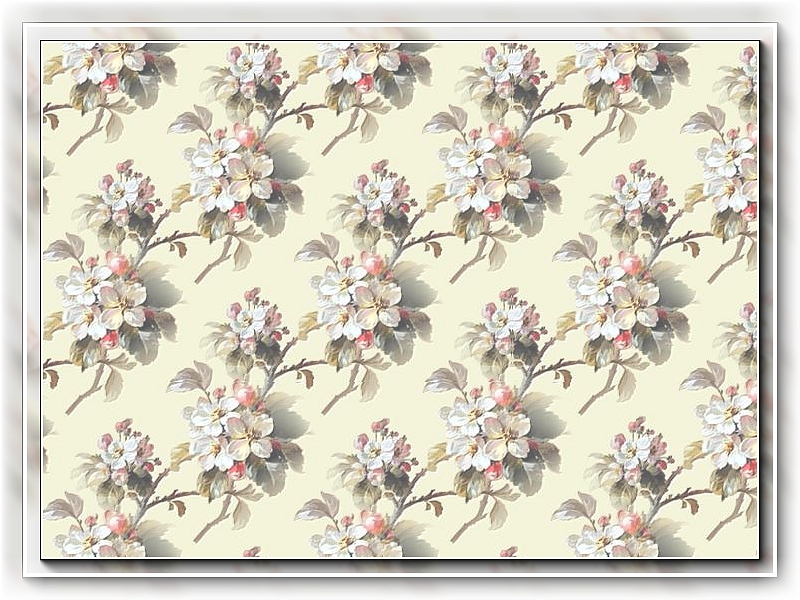 Delicate sprays of apple blossom, diagonally connected in chains.