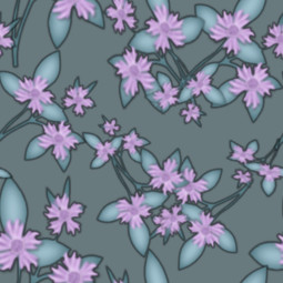 Sprays of purple flowers on a deep, slate background - an unlikely combination, but an effective pattern