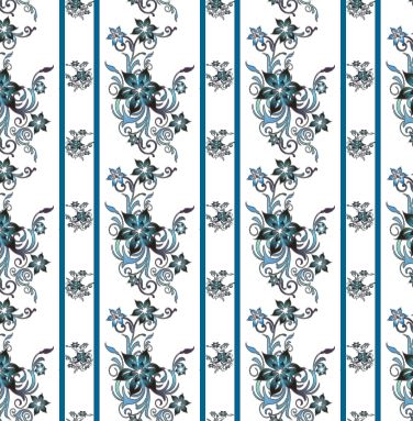 Stylised flower sprays in a regency type, vertical stripe pattern with deep turquoise accents.