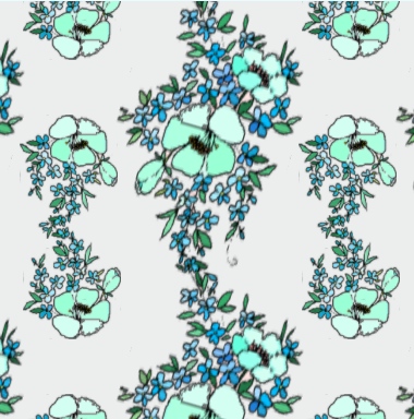 Pretty sprays of mallow blooms with trailing tails of forgetmenots in cool tones of blue and aqua.