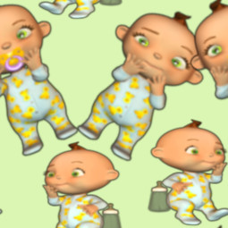 Three little cutiepie dolls posing for a fun nursery pattern.