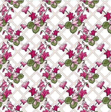The pretty reflexed petals of the cyclamen plant have always intrigued me . . and this repeat pattern of a pink variety shows off this 'look' very well.