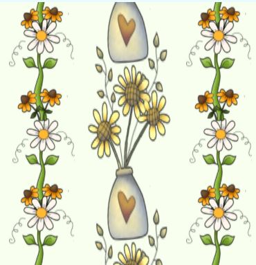 A happy daisy pattern based around a heart-decorated vase of the cheery flowers.