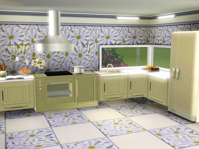 Daisy Mania was made for TSR with the Create a Pattern tool. Do not re-upload outside of TSR, nor claim it as your own work. Credit for objects in style shot: Counter/stove:jomsims. Bread/utensils:lulu. Sink:ruhrpottbobo. Cookbook:Roan. Pot:Mutske. Fruit:lisa86. Gloves:deeiutza. Rangehood/salami:riccinumbers.