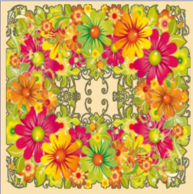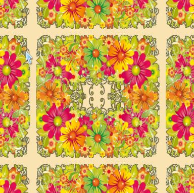 A cheery daisy pattern of orange, red and yellow shades in a square format that could possibly be useful as a tile.