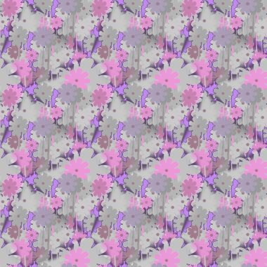'Daubed' painted flowers in purple shadings in a blurred, allover pattern.