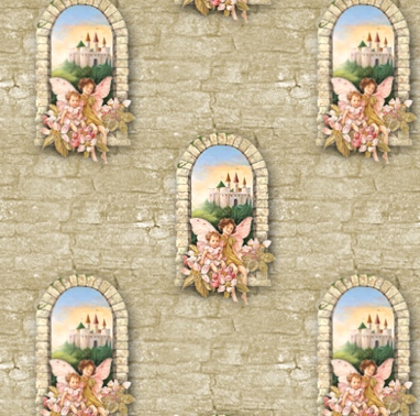 A sweet little repeat pattern for a young girl's room - it has fairies and flowers - not to mention a castle in the background.