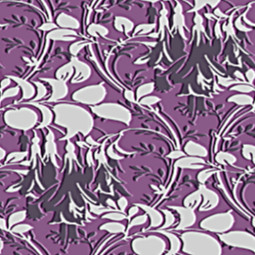 A striking allover pattern of stylised fuchsia bells on a deep lilac ground.