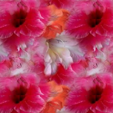 Not for the faint- hearted this one! Taken from a photograph of a sheaf of magnificent gladioli flowers from my daughter's garden, this is bold and in-ya-face patterning.