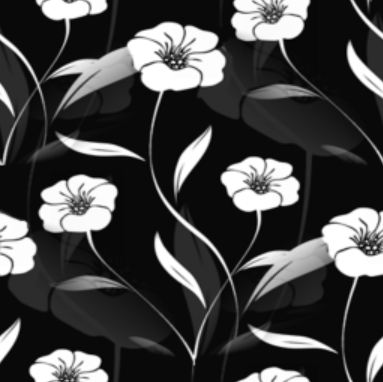 Another of my black and white floral designs- this one featuring single and double flowered marigold stems in white on a black backing.