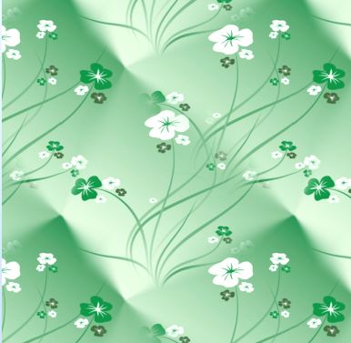 Stylised green and white poppies on long stems decorate a paler green background, with varying light and shade.