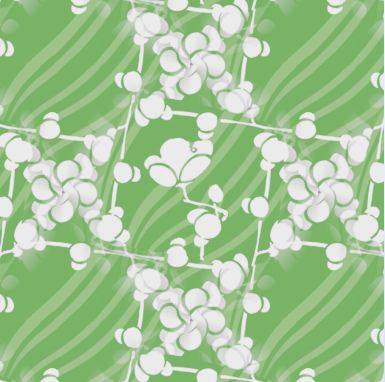 A cool, green and white, floral pattern in a ladder design against a wave-textured background