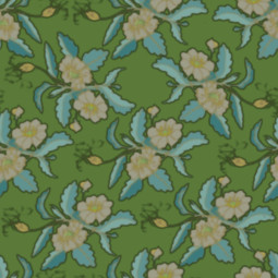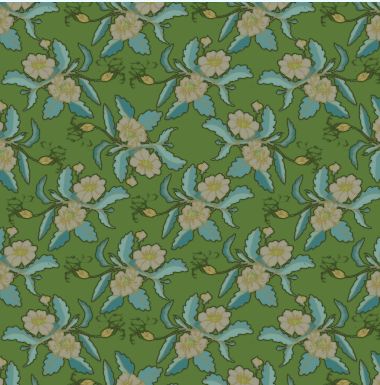 An old fashioned parlour wallpaper pattern in sombre shades of green.